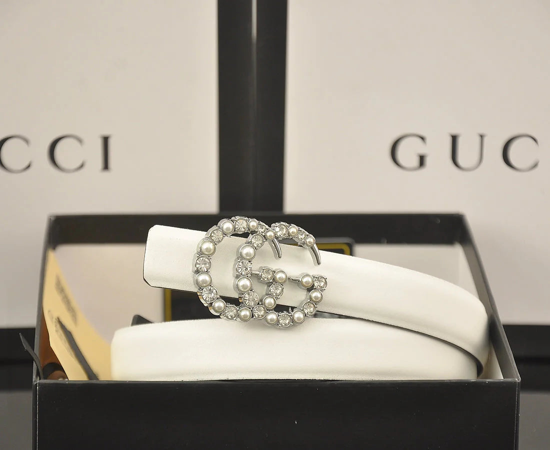 6 Colors fashion double C pearl rhinestone belt
