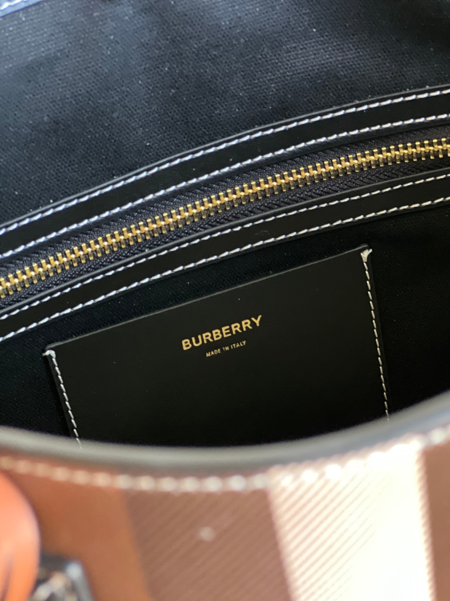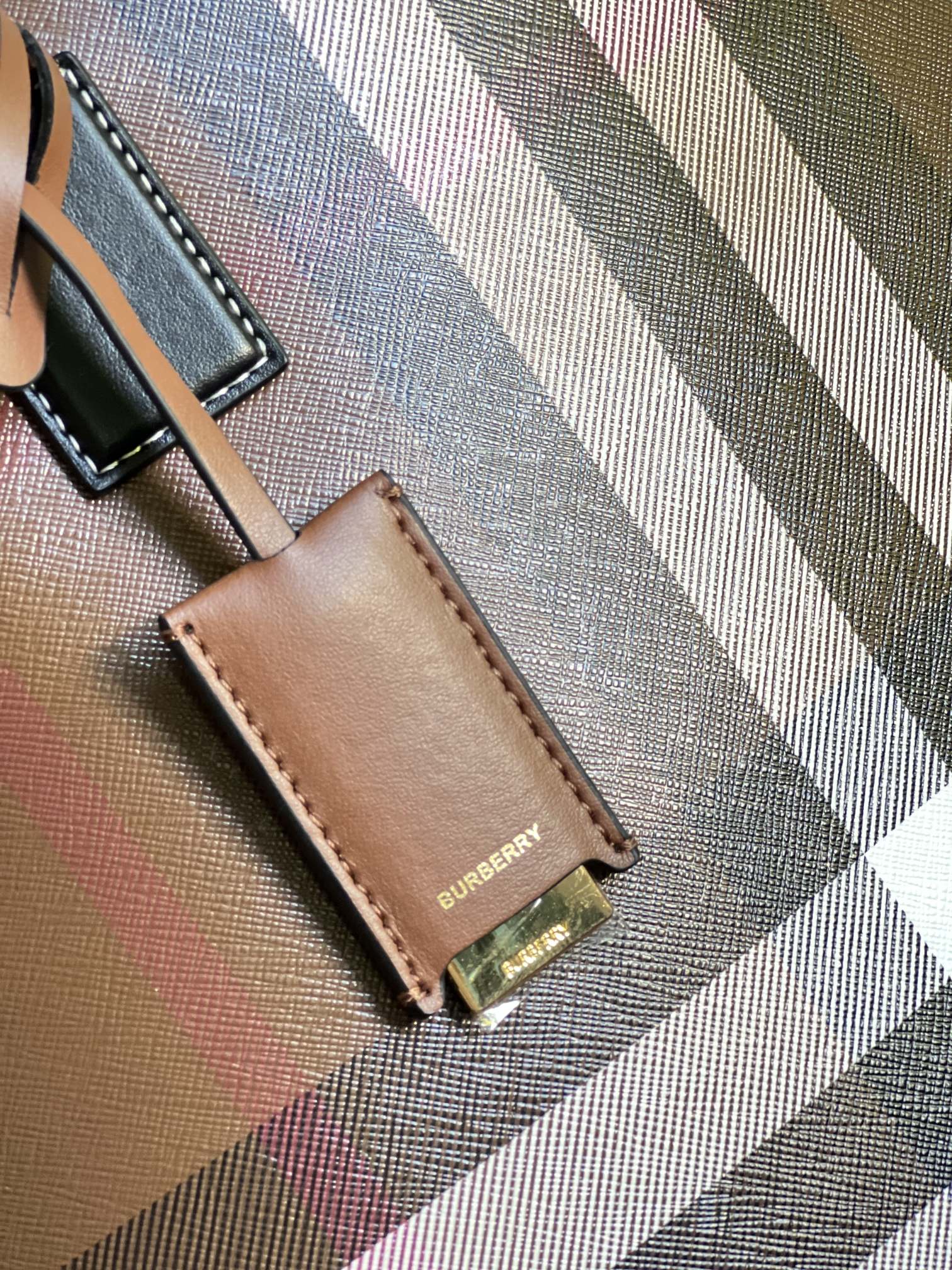 spacious tote bag in our signature check. detailed with topstitched leather trims and a leather-wrapped mirror charm. The main material of this product is made with at least 30% bio-based materials. Bio-based materials are derived from renewable natural resources such as plants and castor oil.