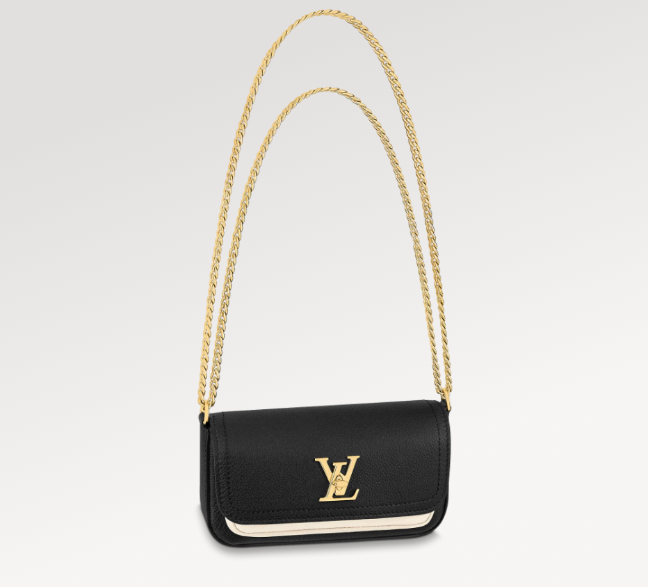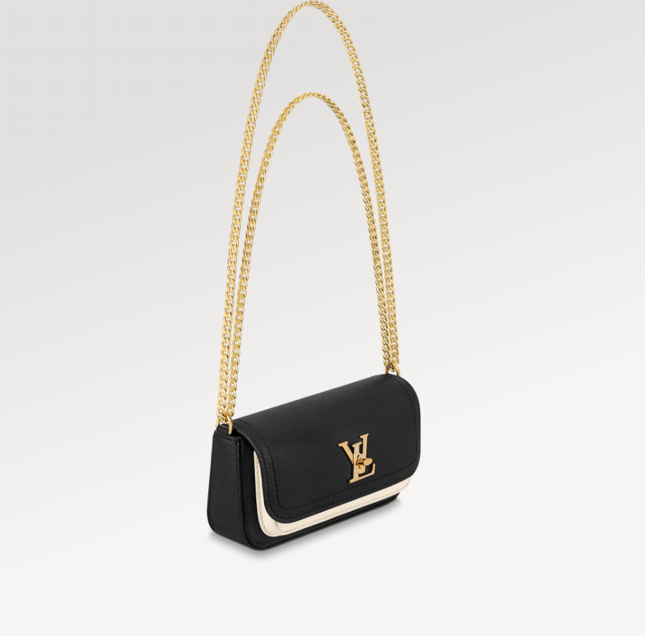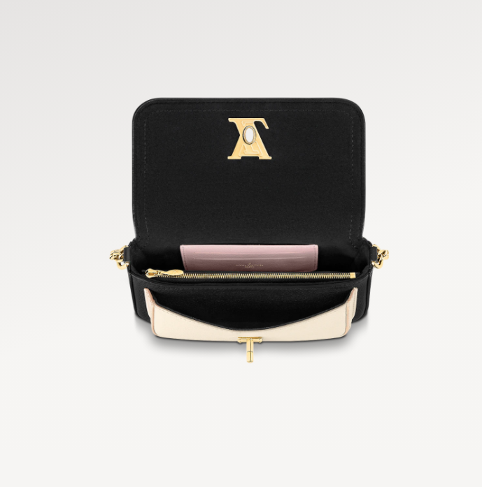 The Lockme Tender Pochette is crafted from grained calf leather. Inspired by the Lockme Tender bag. it is notable for its rounded flap and contrasting front pocket. which can hold a smartphone. Refined gold-tone hardware completes this modern. day-to-evening style: the signature turn-lock of the Lockme line and a sliding chain for shoulder or cross-body carry.